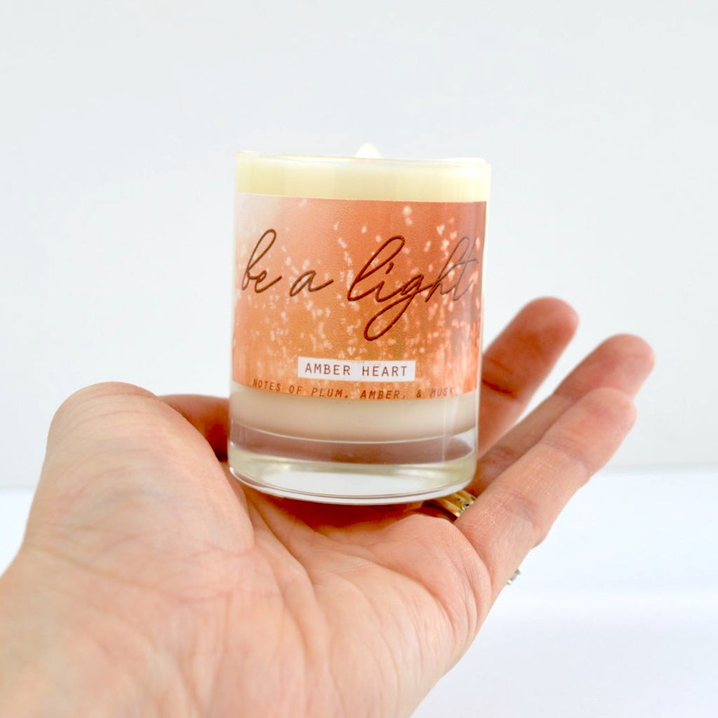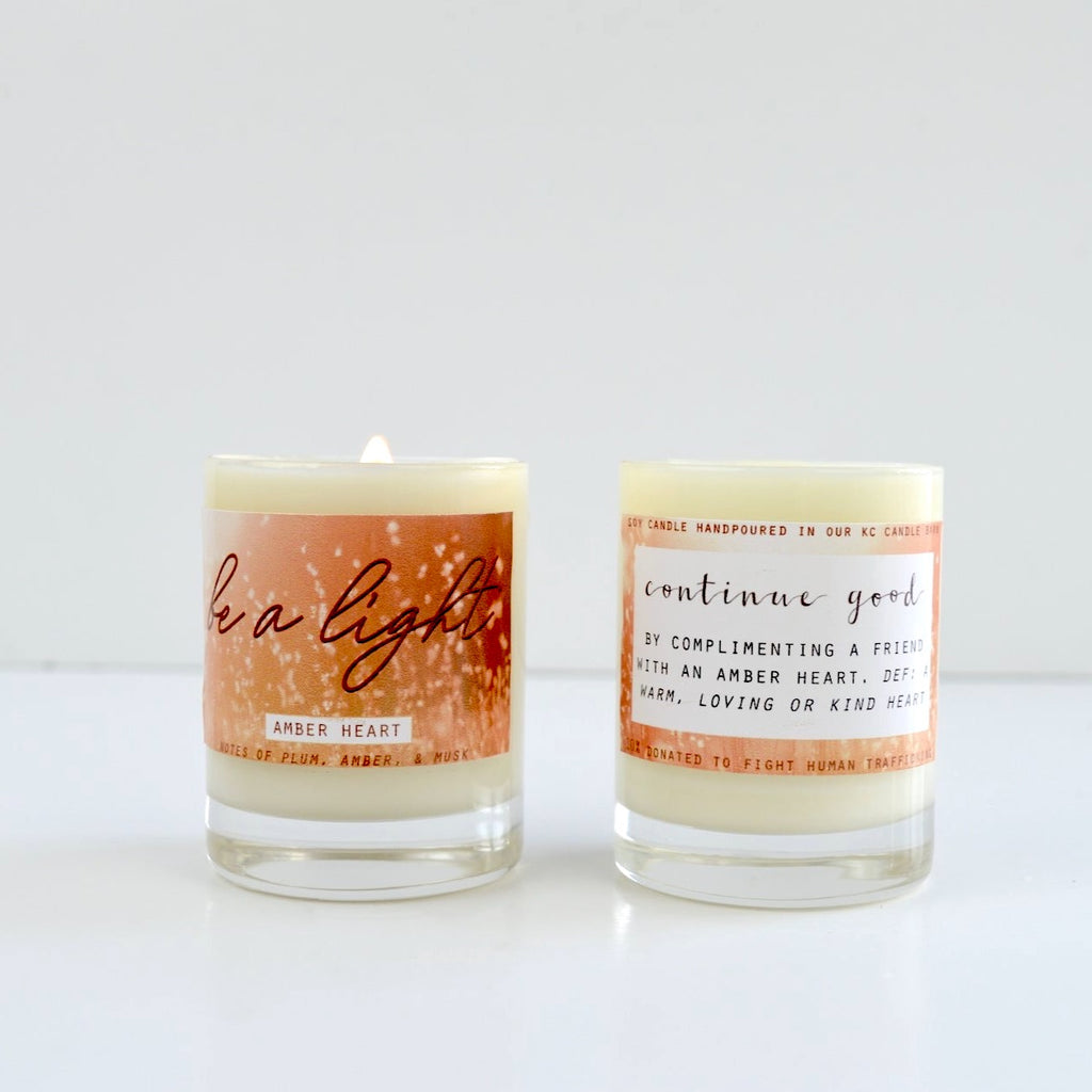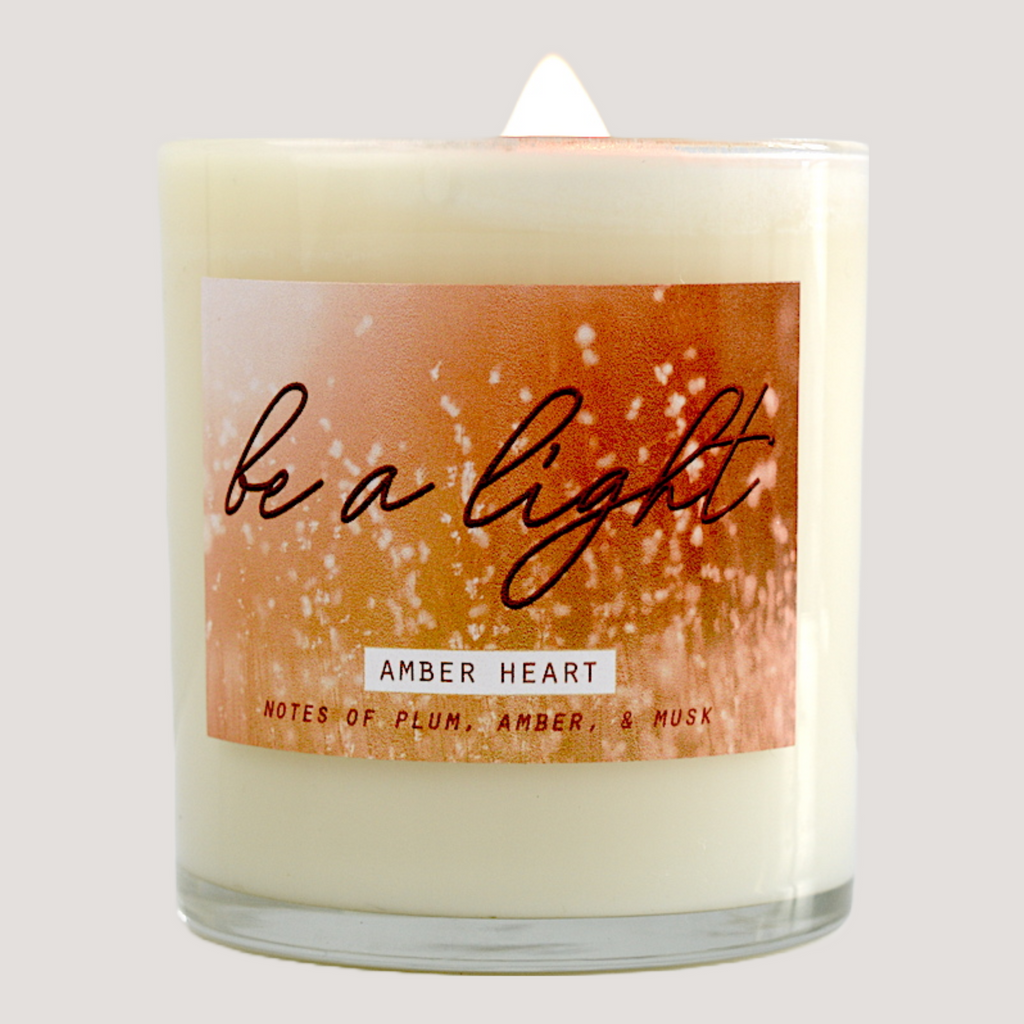 This candle was designed based on the concept of an amber heart. An amber heart is defined as someone with a particularly warm, loving, or kind heart. We felt this should be celebrated therefore we made a candle for someone in your life that has an amber heart. A fun gift idea or to be enjoyed in your own home. :) This candle has sweet notes of fruity plum and citrus that combine with sultry amber, jasmine, & musk. The back of this candle says 'continue good by complimenting a friend with an amber heart; definition: a warm, loving, or kind heart'