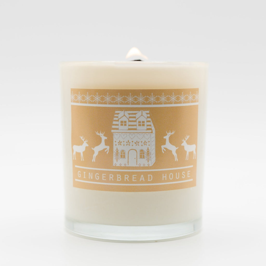 Our toddler's dream candle! He LOVES gingerbread cookies! We hope you delight in the festive scene - house artwork sketched by founder Mollie and turned into a label. Surround yourself in the joyful scent of Holiday baking with our gingerbread cookie candle! It has delicious rich notes of gingerbread, molasses, cinnamon & nutmeg that balances well with vanilla, chestnut, & sugar. The back of this candle says 'continue good by hosting someone this Holiday season.' What a gift to you and the receiver!
