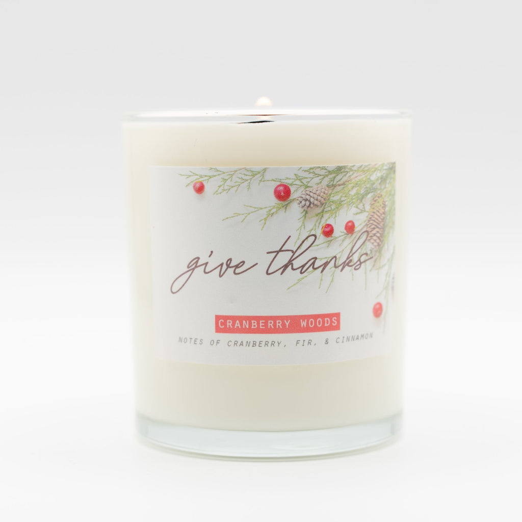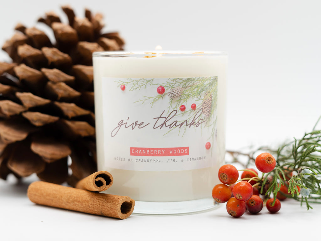 A seasonal candle perfect for Thanksgiving! This candle is a great balanced blend of sweet cranberry and earthy pine, fir, green leaves, and cinnamon. This candle is meant to be enjoyed at the Thanksgiving table to incorporate kindness and gratitude into your gatherings. However, it continues throughout the year as a Christmas candle with its festive coloring and Holiday scent! The back of this candle says 'continue good by writing down or saying what you are thankful for and sharing.' We hope this exercise brings love into your homes!