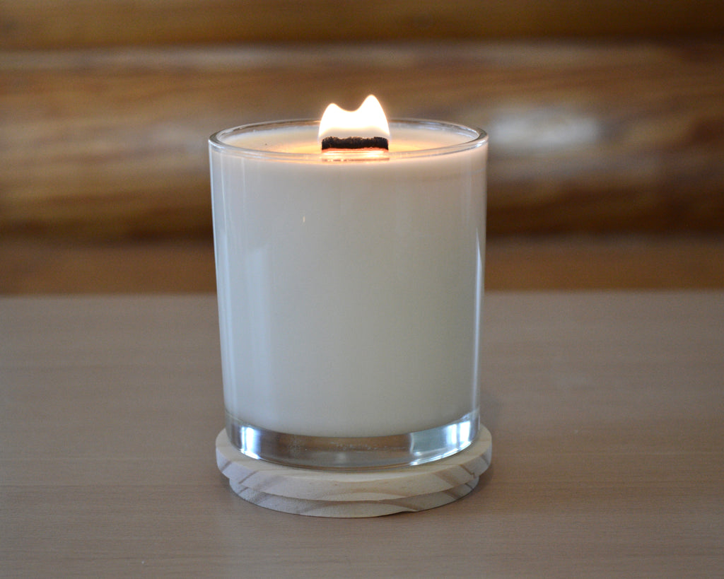 It's definitely sweater weather and this candle agrees! Cozy up with a warm and inviting lush linen fragrance. It's a luxurious and complex scent balanced with earthy notes of sandalwood. May this candle bring warmth and love into your home! The back of this candle says 'continue good by donating warm & cozy clothes to your local homeless shelter.'